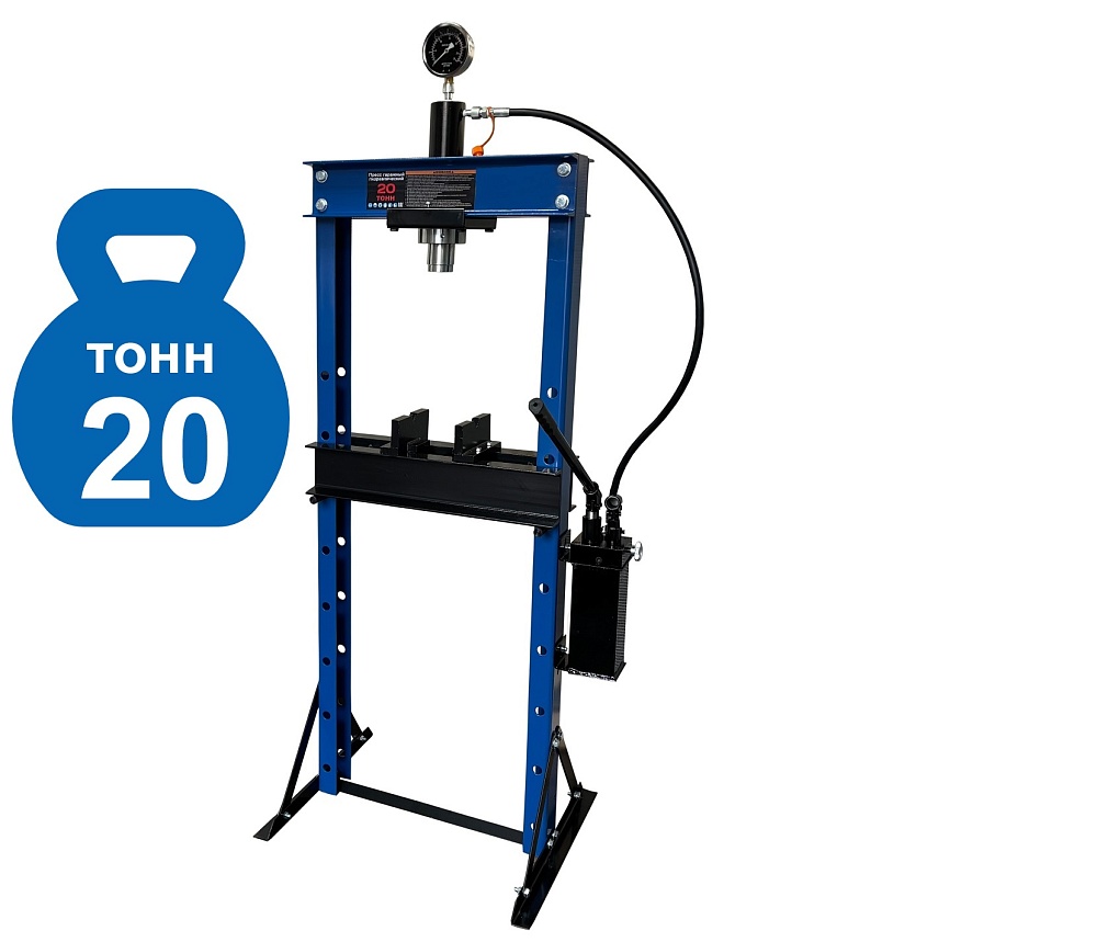 ·         Пресс укомплектован гидравлическим ручным насосом с максимальным  усилием 20т.