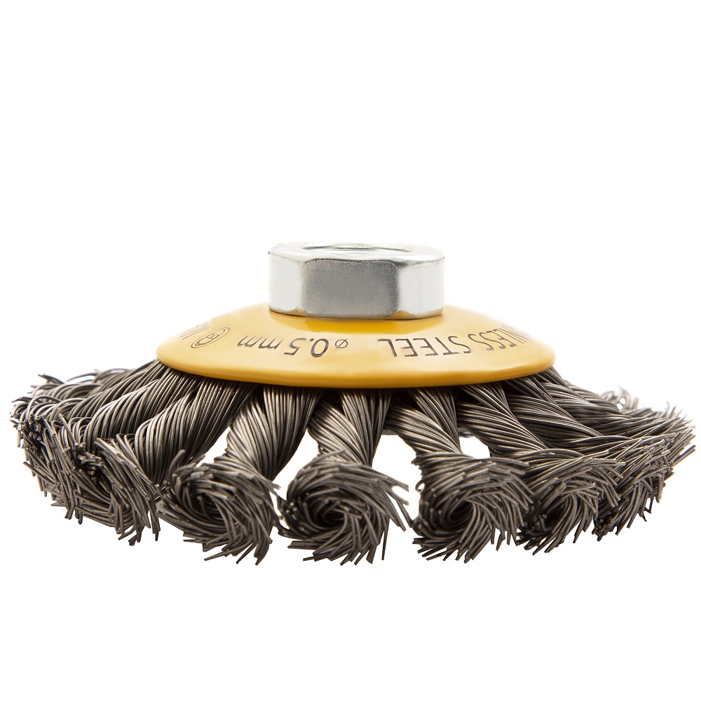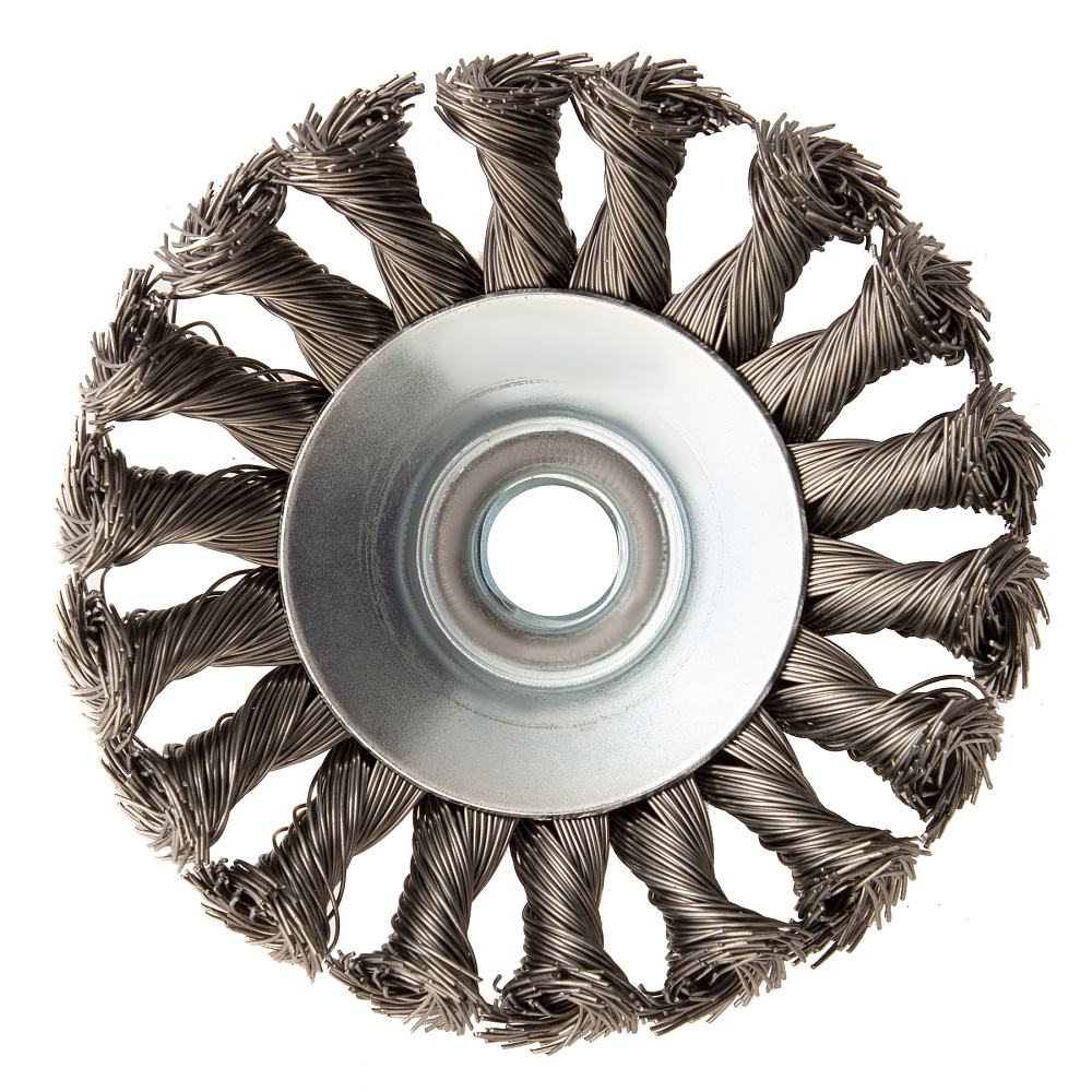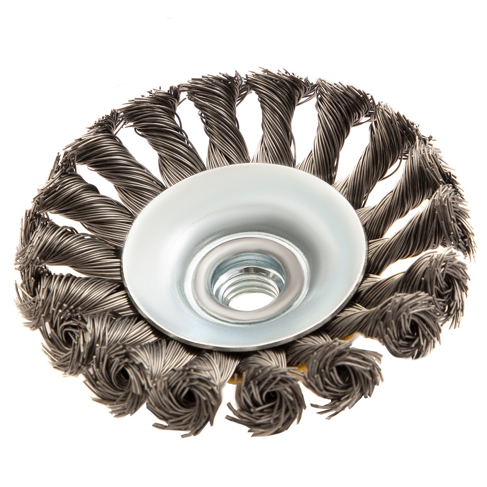 Щетка для УШМ, 100 мм, "Тарелка", крученая нержавеющая проволока 0.5 мм, М14 Denzel купить в Екатеринбурге цена ✅ - Все для СТО