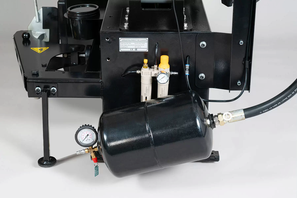 • "Третья рука"- многофункциональное пневматическое приспособление для облегчения монтажа/демонтажа низкопрофильных, широких и жестких шин + пневматический цилиндр для автоматического управления позиционирования рабочей головки по вертикали.