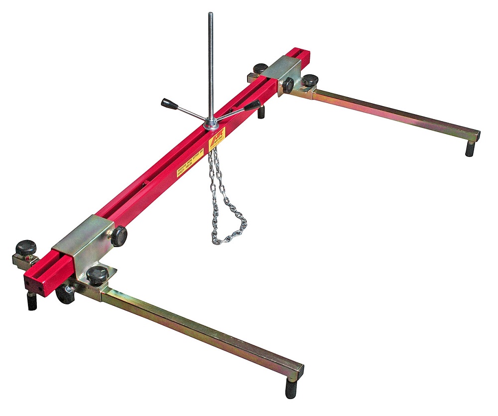 Траверса для вывешивания двигателя с регулируемыми опорами (одна цепь) г/п.0.5т. Специальная конструкция с 4-мя опорами предназначена для вывешивания двигателя без его полного извлечения из моторного отсека. Данная траверса особенно удобна для применения на автомобилях бескапотной компоновки.