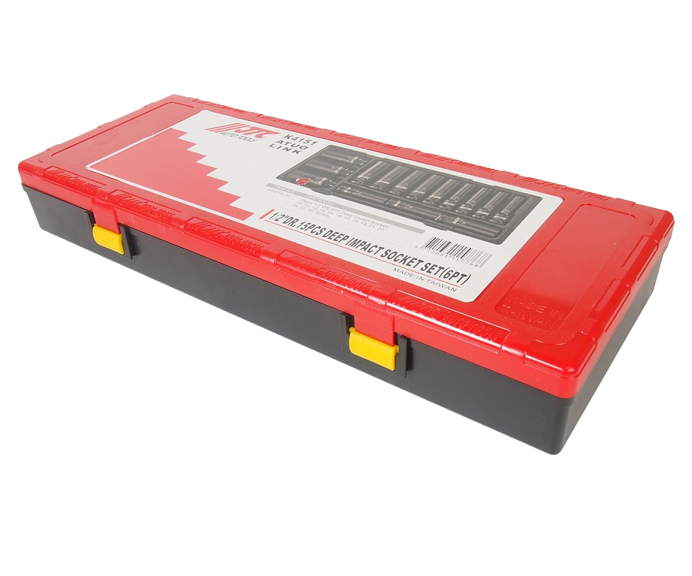 Артикулы JTC-448210-32: 6-гранные головки глубокие ударные: 10, 12, 13, 14, 15, 16, 17, 18, 19, 21, 22, 24, 27, 30, 32 мм. - 15 шт.