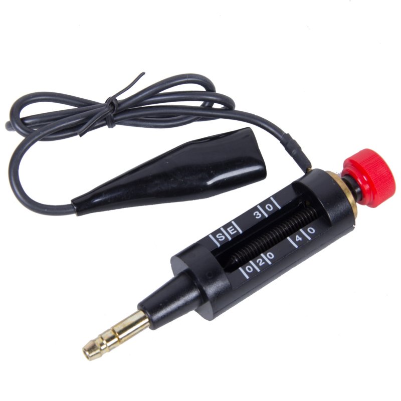 Пробник является имитацией работы свечи зажигания и подсоединяется между высоковольтным проводом и «массой» автомобиля. Регулировочным винтом тестируется «пробой» искры, который зависит от напряжения, генерируемого катушкой зажигания.