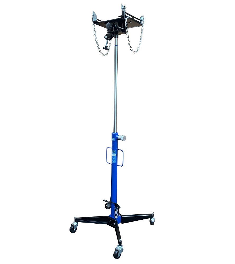 Трансмиссионная стойка грузоподъемностью 500 кг предназначена для монтажа и демонтажа узлов трансмиссий, КПП, тормозных суппортов и других агрегатов на смотровой яме, эстакаде или подъемнике. Оснащена специальной площадкой с цепями для фиксации деталей и транспортировки по цеху. Гидравлический цилиндр с клапанным блоком и возвратной пружиной обеспечивает плавный подъем от 1180 до 2005 мм.