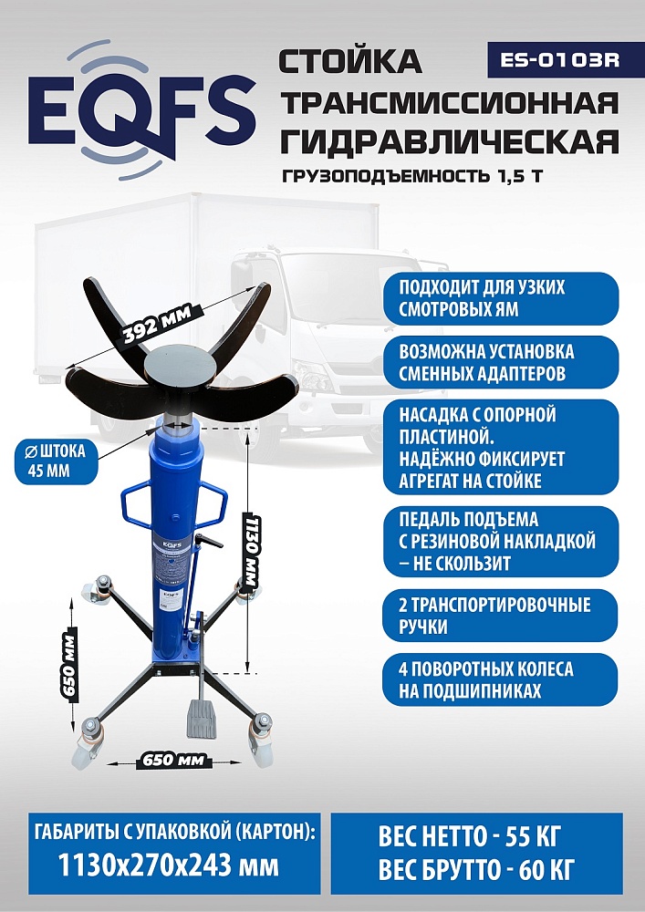 ES-0103R Стойка трансмиссионная гидравлическая 1,5т купить в Екатеринбурге цена ✅ - Все для СТО