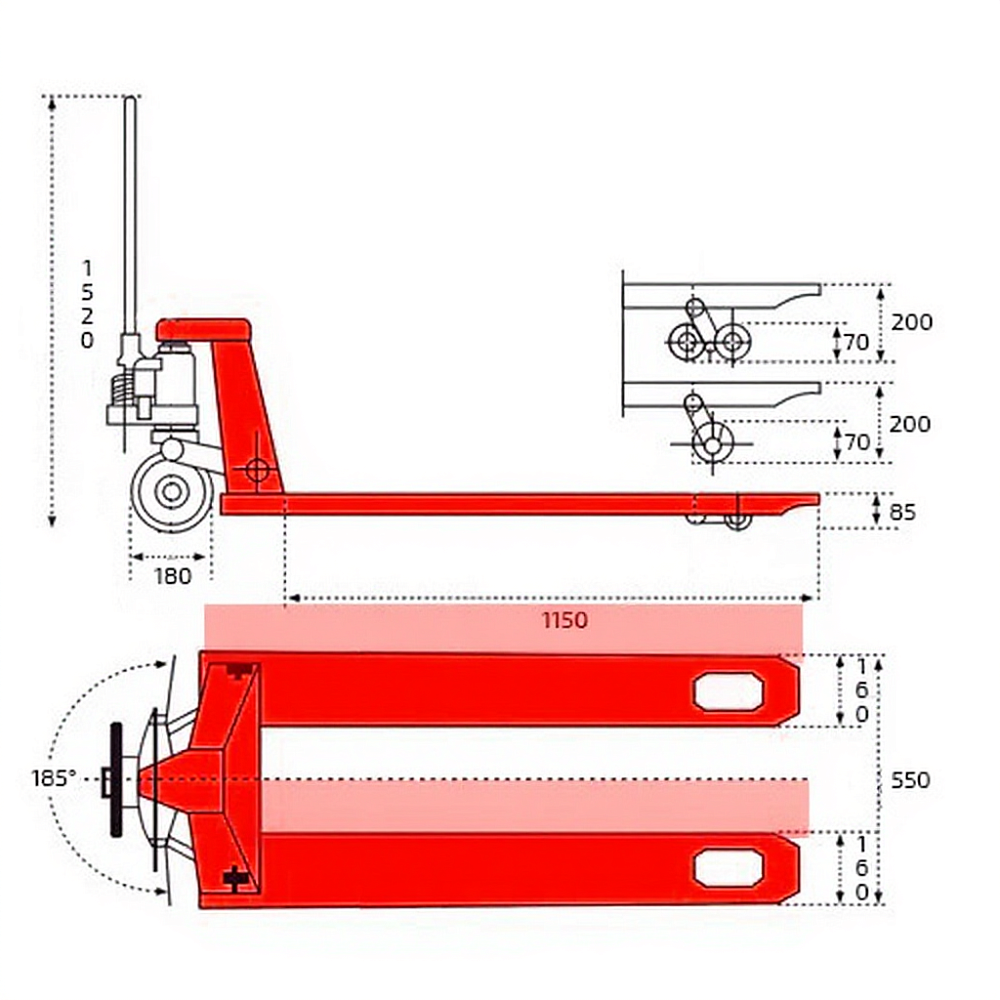 Особенность модели удлиненные вилы – длина 1800 мм вместо стандартных 1150 мм. Подходит для достаточно интенсивной работы и перемещения грузов весом не более 2500 килограмм.