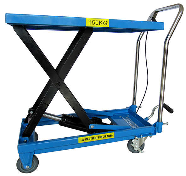 Тележка гидравлическая платформенная TJ-15 для поднятия грузов весом до 150 кг. Подойдет для автосервисов в качестве временной рабочей платформы при проведении ремонта и текущего обслуживания автомобилей. Также может применяться на складах для комплектовки грузов.