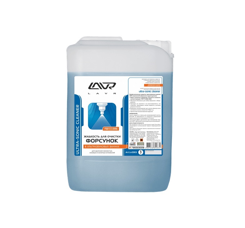 Жидкость для очистки форсунок в ультразвуковых ваннах LAVR Ultra-Sonic Cleaner. Подходит для очистки фильтр сеток топливного насоса, элементов ТНВД и др. Поставляется в 5л. канистрах.