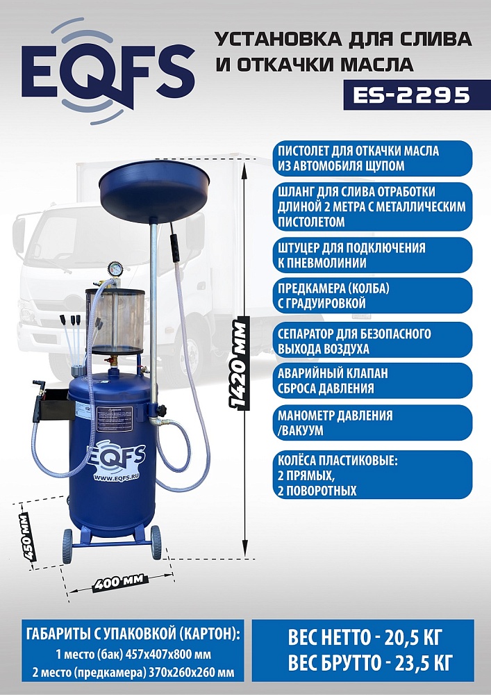 ES-2295 Установка для слива отработанного масла купить в Екатеринбурге цена ✅ - Все для СТО