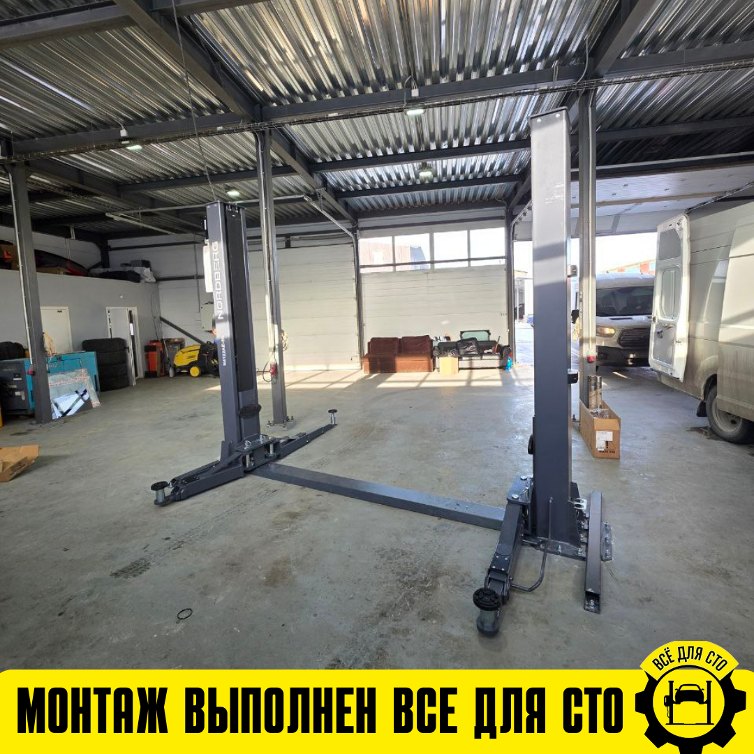 Монтаж NORDBERG N4122AE-5G — двухстоечный подъемник 5 т